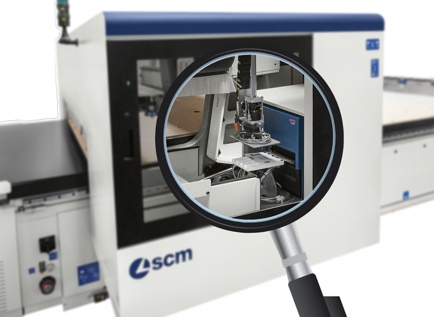 Nová generace portálového nestingové centra se 3 až 4 řízenými osami určené zejména pro zakázkovou výrobu korpusového nábytku, opracování plošných dílců a obrobků z masivu (např. dveře, schody, apod.).