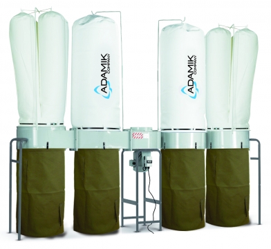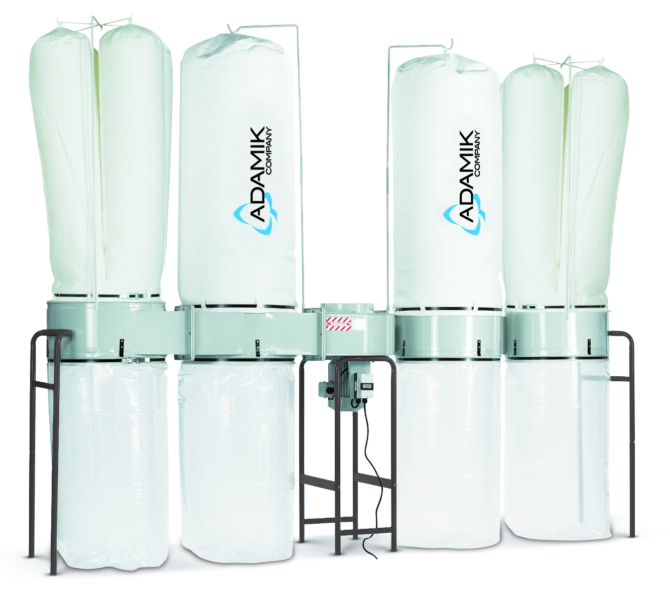 ADAMIK FT 504 s rozšířenou filtrační plochou je nejvýkonnějším pytlovým odsávání určeným k odsávání CNC strojů, širokopásových brusek, rozmítacích pil, čtyřstranek a také jako centrální odsávání dílny.