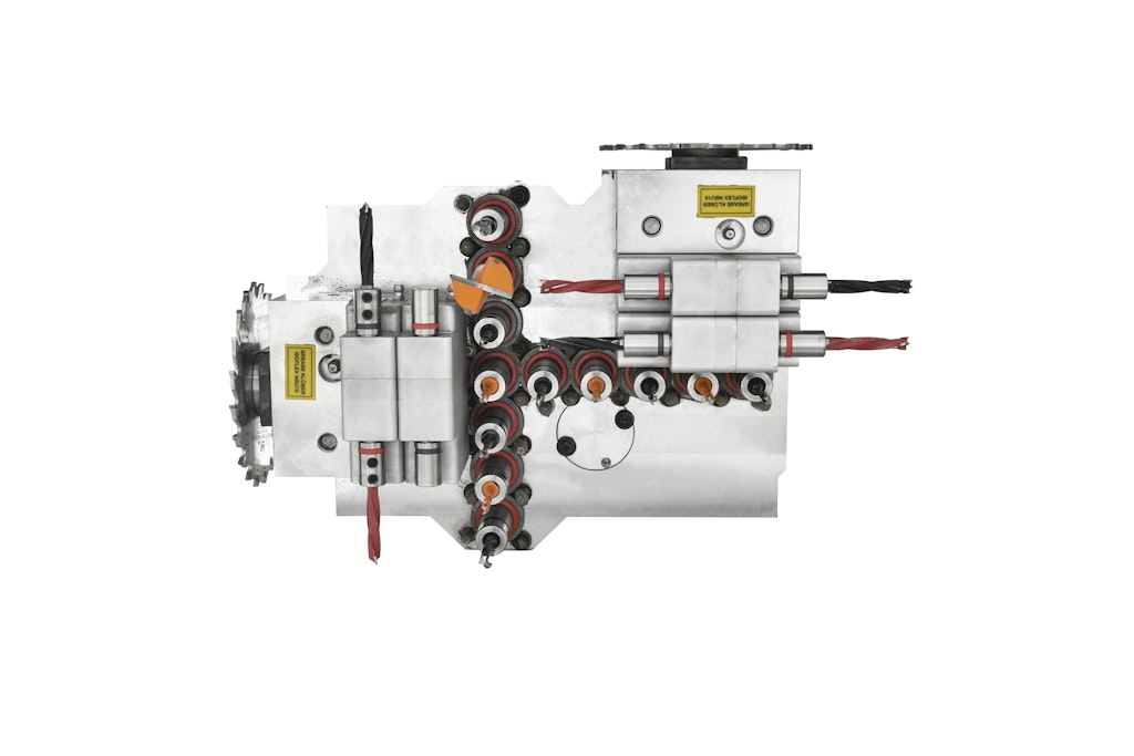 Na jedno založení stroj provede operace: vrtání do plochy, drážkování a rozfrézování.
